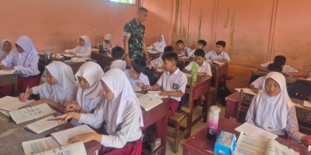 DOLOK MERAWAN, Menarapos.id – Babinsa Koramil 14/DMR DIM 0204/DS Serda KM Boang Manalu melaksanakan kegiatan Wasbang di SDN 102125, Kecamatan Dolok Merawan, Serdang Bedagai.