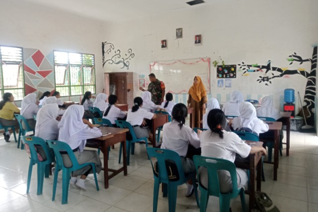 Babinsa Koramil 16/DMS Gelar “Rabu Bersinar”, Edukasi Bahaya Narkoba di SMKN 1 Dolok Masihul