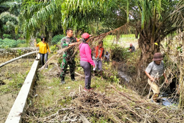 Babinsa Koramil DMS Bersama Warga Bersihkan Parit Cegah Banjir