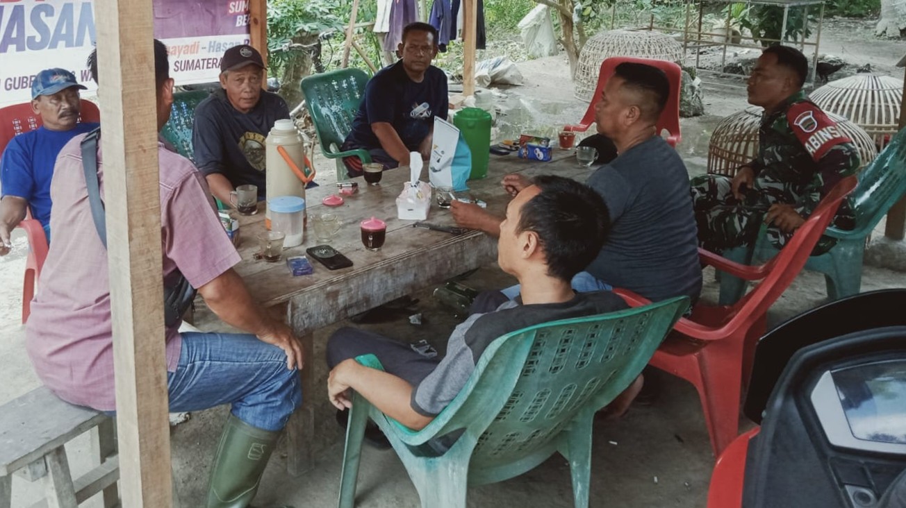 Komsos ini dilakukan di sela-sela waktu istirahat pengerjaan sasaran fisik. Terlihat Sertu Nasution duduk santai di gazebo sederhana, berdialog akrab dengan beberapa warga setempat.