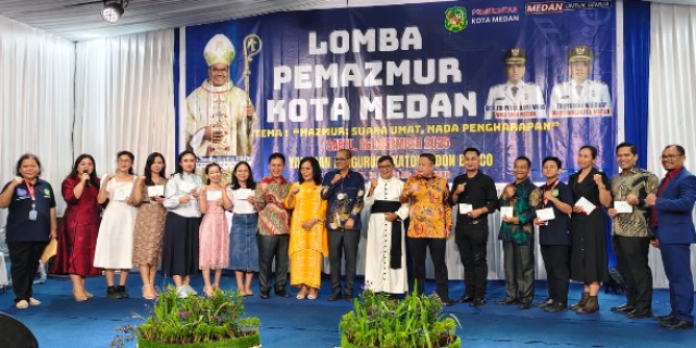 MEDAN, Menarapos.id – Ribuan umat Katolik memadati Komplek Yayasan Perguruan Budi Murni, Jalan Timor, Medan, Sabtu, 6 Desember 2025, pada puncak Lomba Pemazmur Kota Medan 2025. Acara berlangsung meriah dan khidmat, dihadiri para pastor, pengurus paroki, OMK, peserta lomba, perwakilan TNI–Polri, hingga anggota DPRD Medan.