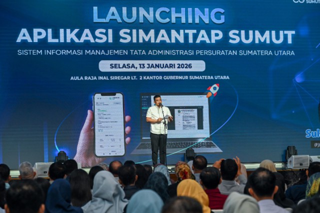 “Sistem ini tujuan utamanya mempercepat dan mempermudah. Jangan lari dari konsep ini,” tegas Bobby saat peluncuran di Aula Raja Inal Siregar, Kantor Gubernur Sumut, Medan, Selasa (13/1/2026).