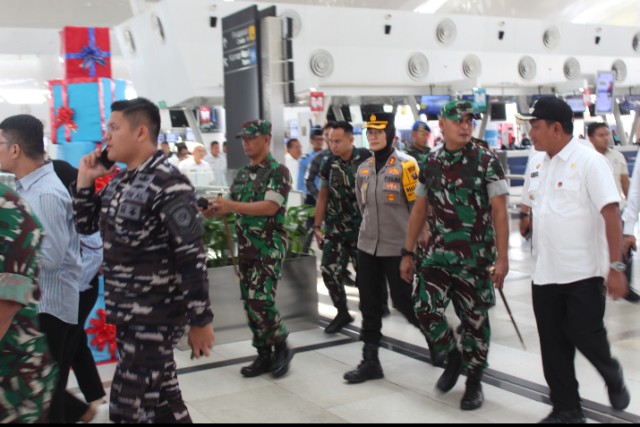 Selain itu, Forkopimda menyerahkan bingkisan kepada penumpang yang baru tiba dan meninjau Posko Pemantauan Nataru di Terminal Kedatangan.