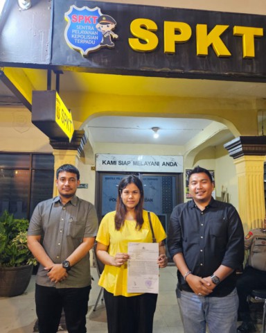 Didampingi tim kuasa hukum—Fauzi Sibarani, Andreas Malau, dan Jaka Ramadani—Irene mengajukan dua laporan polisi pada 1 April 2026, sekitar pukul 23.01 WIB.