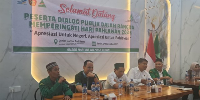 MEDAN, Menarapos.id – Pengurus Wilayah (PW) Gerakan Pemuda (GP) Ansor Sumatera Utara (Sumut) menggelar diskusi publik dalam rangka memperingati hari pahlawan di cafe Jenix Jalan Gatot Subroto, Medan. Senin 17/11/2025.