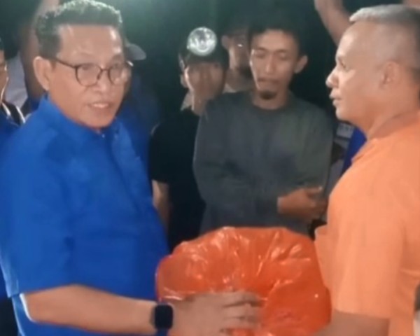 Teks : Anggota DPRD Medan Edwin Sugesti Nasution menyerahkan bantuan korban banjir di kawasan Kelurahan Terjun, Kecamatan Medan Marelan, baru-baru ini. (ist)