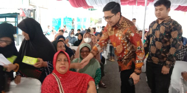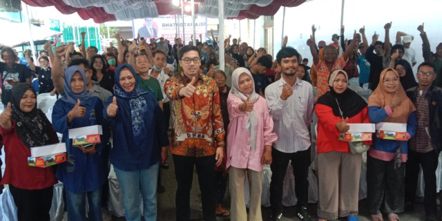 Teks: Anggota DPRD Medan Agus Setiawan menyapa warga yang hadir dalam pelaksanaan reses di Jalan Samarinda Medan. (Amsal)
