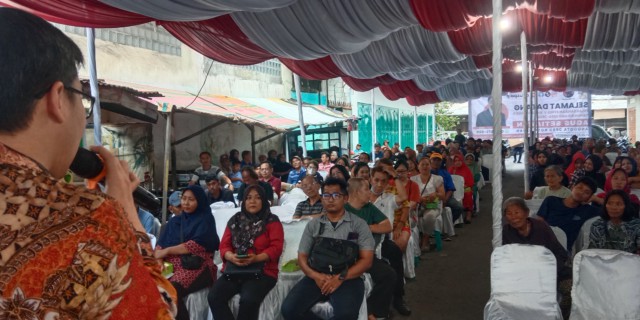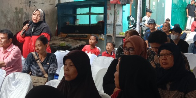 Teks: Tuti satu dari ratusan peserta reses yang hadir bertanya tentang pengurusan kartu keluarga. (Amsal)
