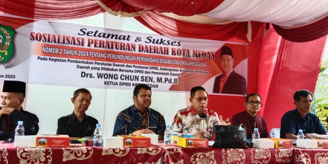 MEDAN, Menarapos.id – Ketua DPRD Medan Wong Chun Sen menggelar Sosialisasi Perda Kota Medan No.2 Tahun 2024 Tentang Perlindungan Disabilitas dan Lanjut Usia, yang berlangsung di Halaman SDN 064966 di Jalan Sehati, Kelurahan Tegal Rejo, Kecamatan Medan Perjuangan, Kota Medan, Minggu (09/11/25).