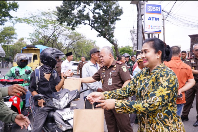 Kegiatan sosial tersebut digelar di depan Kantor Kejati Sumut, Jalan Jenderal Besar AH Nasution, Pangkalan Mansyur, Medan, Jumat (27/2/2026). Takjil dibagikan kepada para pengguna jalan yang melintas, petugas keamanan, serta Pegawai Pemerintah Non Pegawai Negeri (PPNPN) di lingkungan Kejati Sumut.