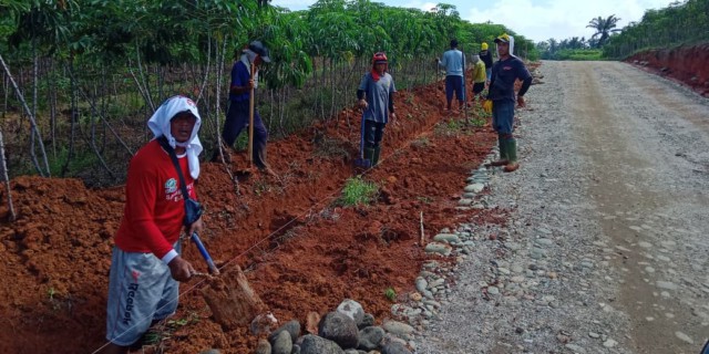 Mereka memindahkan material dan menyusun batu-batu untuk membentuk struktur tanggul yang kuat, mengamankan badan jalan yang baru dibuka sepanjang 2.702 meter.