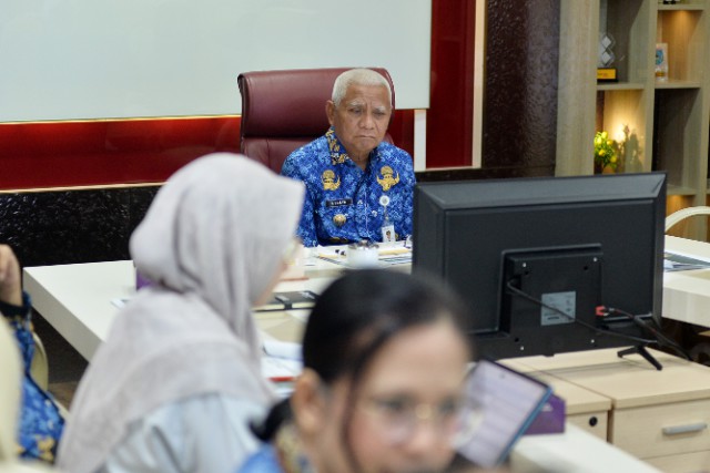 Teks : Wakil Gubernur Sumatera Utara (Sumut) Surya mengikuti Rapat Koordinasi Pengendalian Inflasi Tahun 2025 dengan Kementerian Dalam Negeri secara daring melalui aplikasi zoom meeting di Ruang Sumut Smart Province Lantai 6 Kantor Gubernur Sumut Jalan Diponegoro Kota Medan. (ist)
