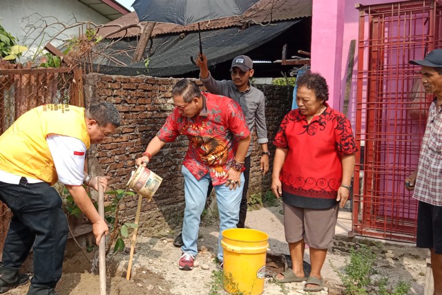 MEDAN, Menarapos.id – Ketua DPRD Medan, Wong Chun Sen, melakukan penanaman pohon di halaman Vihara Delapan Raja Langit, Jalan Bunga Raya III, pada Minggu (25/1). Kegiatan ini diadakan dalam rangka menjaga kelestarian lingkungan sekaligus memperingati momen spesial PDI Perjuangan.