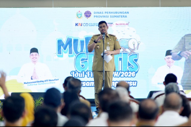 MEDAN, Menarapos.id — Gubernur Sumatera Utara Muhammad Bobby Afif Nasution melepas lebih dari 6.500 peserta program Mudik Gratis Idulfitri 1447 Hijriah yang diselenggarakan Pemerintah Provinsi Sumatera Utara. Pelepasan dilakukan secara simbolis di Stasiun Besar Kereta Api Medan, Senin, 16 Maret 2026.