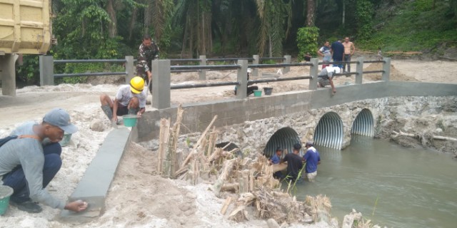 Pembangunan di lokasi tersebut memberikan manfaat bagi sekitar 60 kepala keluarga. Adapun pekerjaan yang dilakukan meliputi penimbunan badan jembatan dan pemasangan mal selop dinding jembatan.