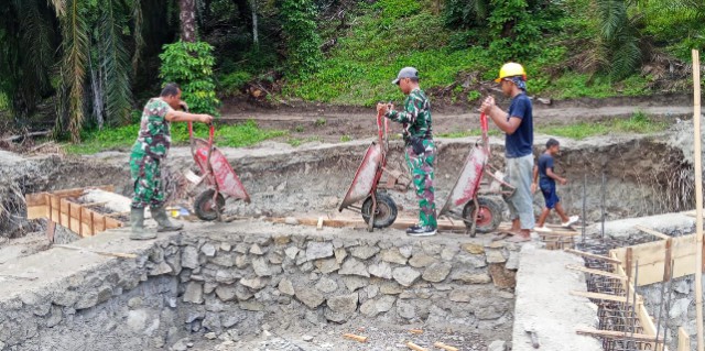 Pembangunan ini juga melibatkan 10 personel TNI, 3 aparat desa, dan 8 warga setempat. Cuaca di lokasi dilaporkan cerah sejak pagi hingga sore hari.