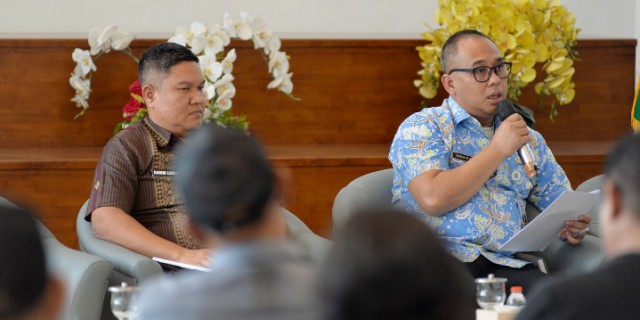 Teks : Pemerintah Provinsi Sumatera Utara (Sumut) melalui Dinas Pekerjaan Umum dan Perumahan Rakyat Provinsi Sumut melakukan Konferensi Pers terkait Progres Pembangunan Infrastruktur berkelanjutan di Provinsi Sumatera Utara (Program Instansi). Kegiatan yang difasilitasi Dinas Kominfo Sumut ini berlangsung di Lobby Dekranasda Lantai 1 Kantor Gubernur Sumut Jalan Diponengoro Kota Medan.(ist)