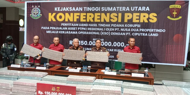 Kajati Sumatera Utara Dr.Harli Siregar dihadapan awak media, Jaksa selaku penyidik dalam perkara tindak pidana korupsi penjualan Asset PTPN I Regional I oleh PT. Nusa Dua Propertindo melalui Kerjasama Operasional (KSO) dengan PT. Ciputra Land berupaya tidak semata-mata menghukum para pelaku tetapi juga berupaya untuk memulihkan kerugian keuangan negara dan Penyidik juga mempertimbangkan untuk melakukan penyitaan terhadap aset-aset yang sedang berperkara namun dengan pengembalian kerugian keuangan negara ini akan diperhitungkan bahwa para pelaku dengan kesadarannya telah mengembalikan atau ber itikad baik dalam rangka pemulihan keuangan negara.