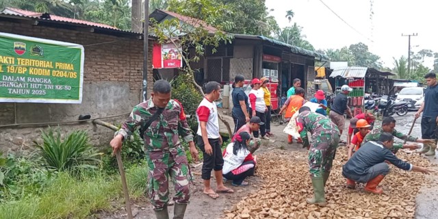 SILINDA, Menarapos.id – Dalam rangka memperingati HUT TNI Ke-80 Tahun 2025, Personil Koramil 19/BP DIM 0204/DS bersama Forkopimca Silinda melaksanakan Bakti Teritorial Prima dengan melaksanakan kegiatan gotong royong membenahi jalan yang rusak di Desa Tarean Kecamatan Silinda, Kabupaten Deli Serdang.
