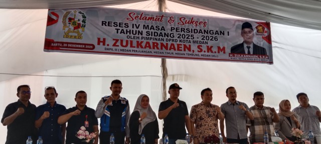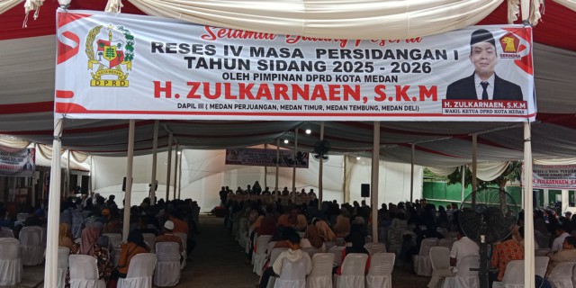 MEDAN, Menarapos.id – Ribuan warga menghadiri pelaksanaan Reses IV Masa Persidangan I Tahun Sidang 2025–2026 yang digelar Wakil Ketua DPRD Kota Medan, H Zulkarnaen SKM. Kegiatan tersebut berlangsung di halaman SMK YWKA, Jalan Lampu, Pulo Brayan Bengkel Baru, Kecamatan Medan Timur, Sabtu (20/12/2025).