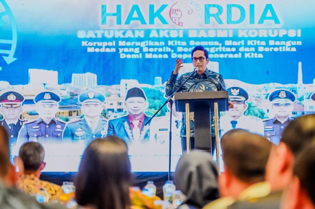 Hal itu disampaikan Rico saat Peringatan Hari Anti Korupsi Sedunia Kota Medan yang dirangkai dengan Gelar Pengawasan Daerah (Wasda) Tahun 2025 di Hotel Aryaduta Medan, Kamis (18/12/2025).