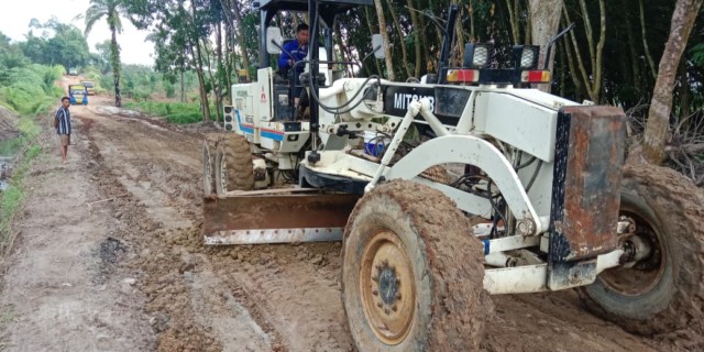 Untuk memastikan pengerjaan berjalan efektif dan cepat, Satgas TMMD langsung mengerahkan alat berat berupa grader. Alat berat ini bertugas meratakan badan jalan dari kondisi awal yang berlumpur dan sempit menjadi jalur yang siap untuk tahap perkerasan berikutnya.
