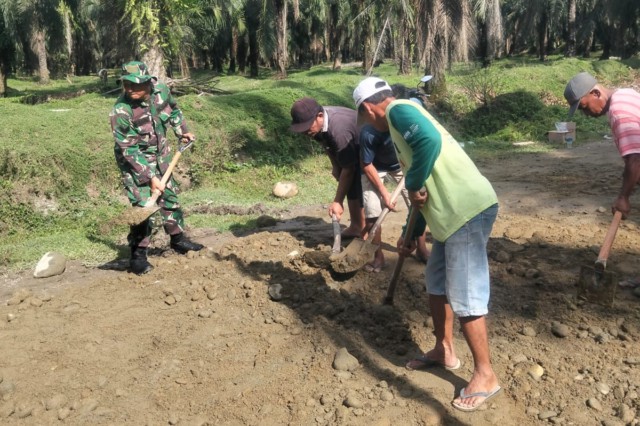 Prajurit TNI yang tergabung dalam Satgas TMMD terlihat bahu-membahu bersama puluhan warga Blok 10 melaksanakan berbagai pekerjaan fisik. Beberapa kegiatan yang dilaksanakan meliputi: