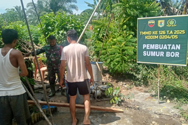 SERDANG BEDAGAI – Satuan Tugas (Satgas) TNI Manunggal Membangun Desa (TMMD) ke-126 Kodim 0204/DS terus berupaya meningkatkan kesejahteraan masyarakat melalui pembangunan sarana air bersih.