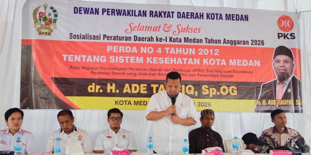 Hal itu disampaikan Ade Taufiq saat Sosialisasi Peraturan Daerah Nomor 4 Tahun 2012 tentang Sistem Kesehatan Kota Medan, yang digelar di dua lokasi, yakni Jalan Sisingamangaraja Gang Thawalib, Kelurahan Kotamatsum III, Kecamatan Medan Kota, serta Jalan Sepakat Gang Kerabat, Kelurahan Binjai, Kecamatan Medan Denai, Sabtu, 17 Januari 2025. Kegiatan tersebut dihadiri ratusan warga.