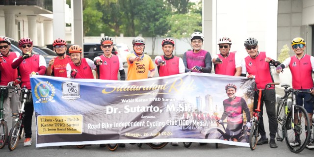 MEDAN, Menarapos.id – Wakil Ketua DPRD Sumatera Utara, Sutarto, menggelar kegiatan gowes bareng Komunitas Road Bike Independent Cycling Club (RBICC) Medan, Minggu (26/4/2026).