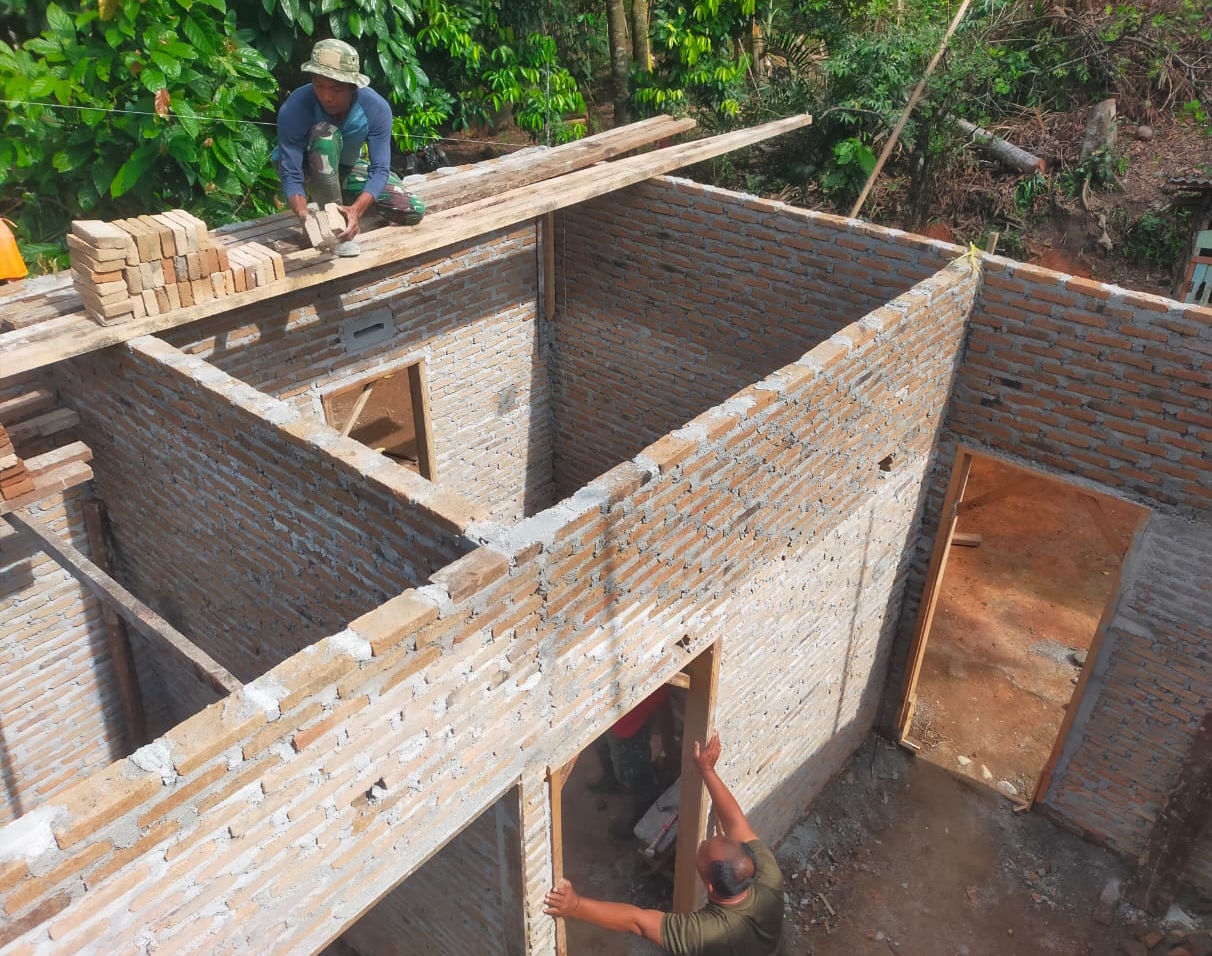 Proses pengerjaan RTLH milik Bapak Ediyan di salah satu desa sasaran TMMD terus dipercepat oleh personel Satgas. Fokus utama pengerjaan saat ini adalah pemasangan dinding bata yang membentuk kerangka utama rumah.