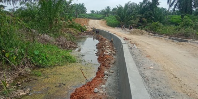 Penyelesaian TPT ini krusial karena memiliki fungsi ganda: memperkuat struktur tanah di tepi jalan dan memastikan sistem drainase berjalan lancar. Dengan plesteran yang sempurna, TPT kini menjamin keawetan jalan desa yang telah dibangun.