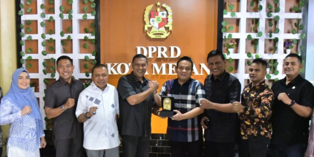 MEDAN, Menarapos.id – Wakil Ketua DPRD Kota Medan H. Zulkarnaen bersama Anggota DPRD Kota Medan H. Iswanda Ramli dan H.T. Bahrumsyah menyambut kunjungan kerja Badan Legislasi DPRK Banda Aceh, Senin (21/07/2025).