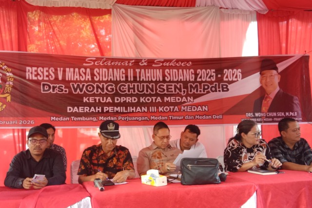 MEDAN, Menarapos.id – Ketua DPRD Kota Medan, Wong Chun Sen, menggelar Reses V Masa Sidang II Tahun Sidang 2025–2026 di Lapangan Jalan Sidodame, PBD II, Kecamatan Medan Timur. Dalam kegiatan yang dihadiri hampir 2.000 warga itu, berbagai persoalan pelayanan publik hingga kesejahteraan masyarakat disampaikan secara langsung.